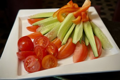 Grilled salad with beef and BBQ sauce 270 beef, bell pepper, zucchini, red onion, cherry tomato, romaine lettuce, eggplant, BBQ sauce 27.00BYN.